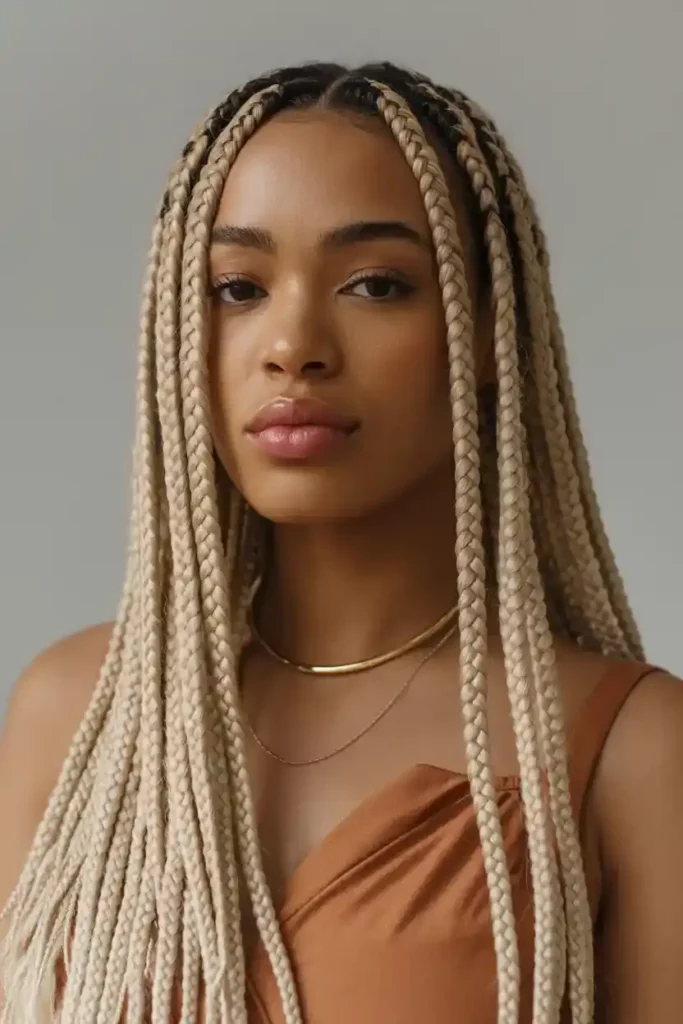 This look flatters all skin tones and brings a summery glow to your style. Whether you choose honey blonde or platinum accents, it’s a confident, fashion-forward twist on a timeless cultural braid.